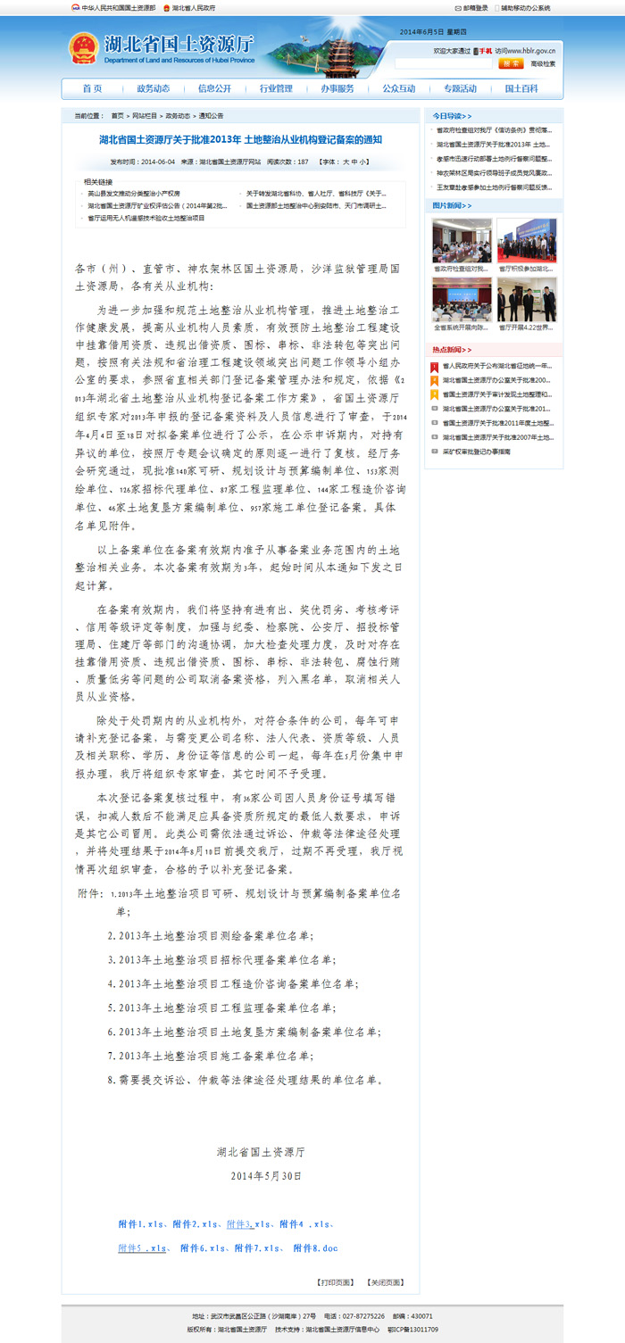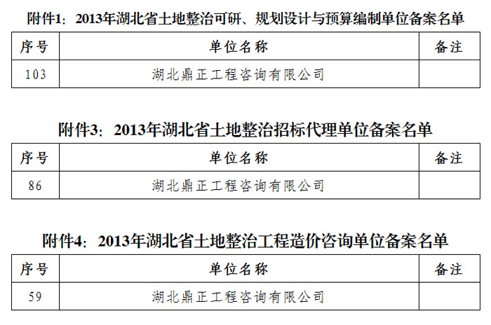 祝賀我司所有相關(guān)業(yè)務(wù)均通過(guò)湖北省國(guó)土資源廳2013土整從業(yè)機(jī)構(gòu)備案
