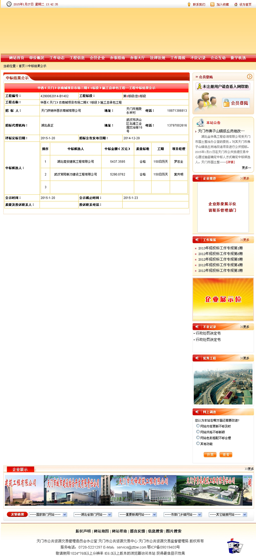 華西(天門)農商城項目市場二期(1標段)施工總承包工程