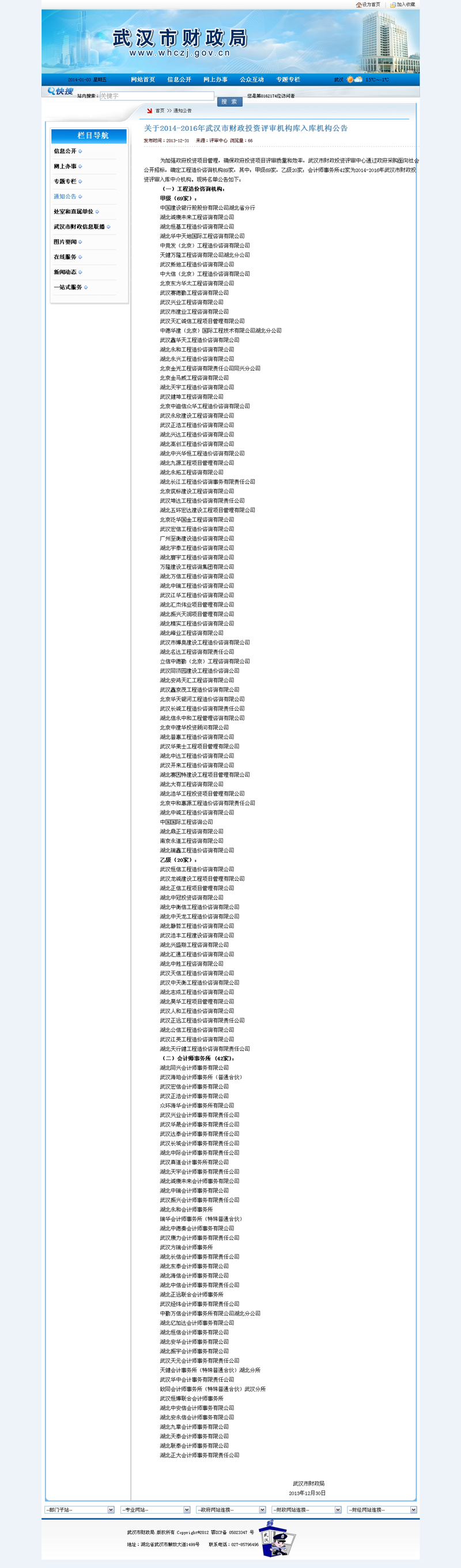 祝賀我公司入圍武漢市財(cái)政投資評(píng)審中心機(jī)構(gòu)庫(kù)