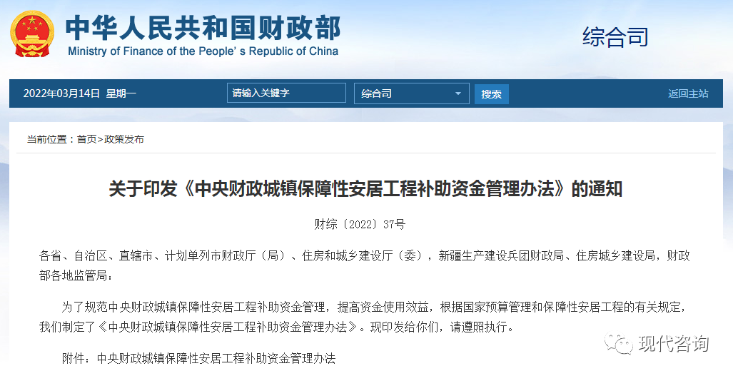 據財政部網站3月14日消息,財政部印發《中央財政城鎮保障性安居工程補助資金管理辦法》。
