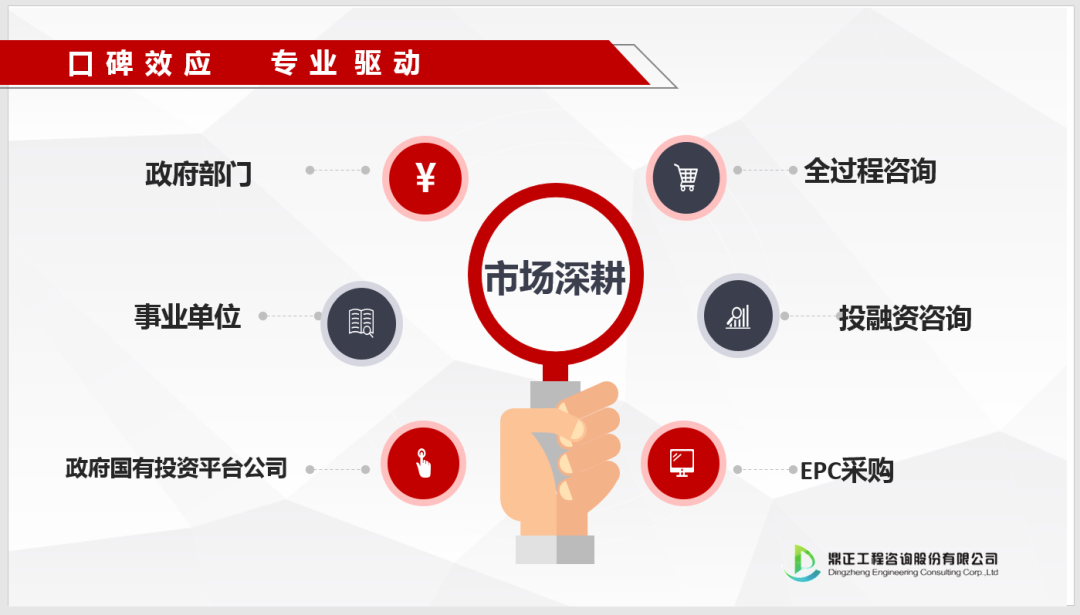 1、市場部:通過優(yōu)質市場、優(yōu)質專業(yè)服務帶動工程設計、監(jiān)理業(yè)務承接,助力全過程工程咨詢服務戰(zhàn)略。