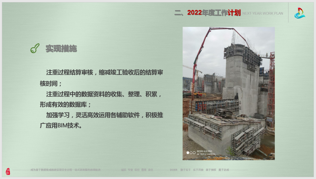 5、造價咨詢事業(yè)部:全過程造價咨詢項目采用計劃先行,過程管控,將竣工結算工作前置,以過程分階段結算的方式,融工程結算與整個項目管理為一體。