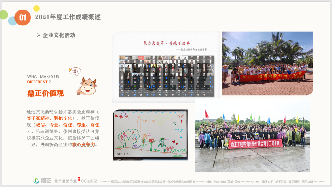 本次年終總結會議既是一次回顧過往的總結大會,也是一次展望未來、再創(chuàng)佳績的動員大會。感謝全體鼎正人在2021年度的積極付出與努力,望大家繼續(xù)加強自身學習,提高工作效率,端正工作態(tài)度,提升服務質量,全體同仁齊心協(xié)力乘勢而上,凝聚力量共筑未來,相信明天會更好!