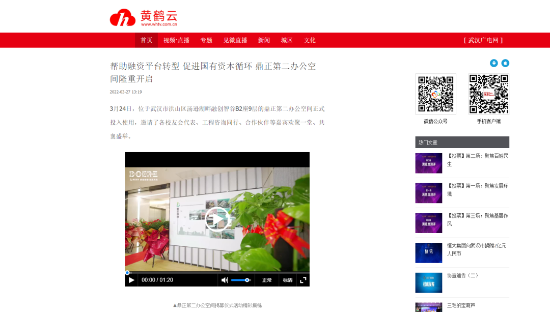 ▲武漢廣播電視臺漢新聞對鼎正第二辦公空間揭幕儀式報道