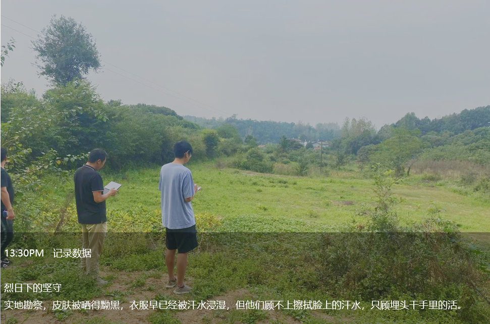 下午2點自然資源部虎哥無懼烈日“烤”驗,在項目現場開展勘察工作,他以山巒為稿紙,以圖紙為筆,以汗水為墨,書寫最真實的工作日常。