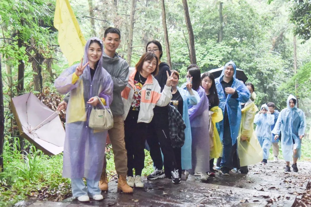 漸漸天空下起了小雨,我們也換上了五顏六色的雨衣。