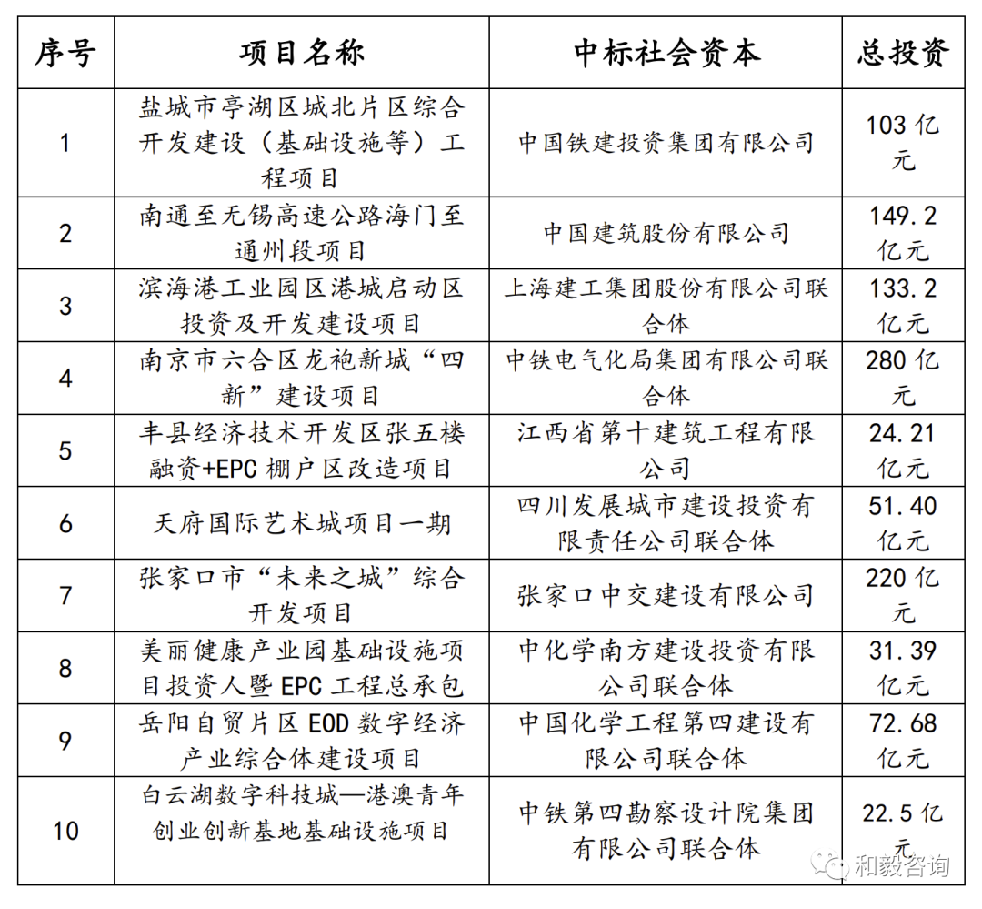 從投資人+EPC模式的實質來看,其就是國企項目的股權融資,通常是國企單位承擔了城建項目開發任務,并依托該項目尋找社會合作伙伴,共同出資、成立項目公司。當前該模式下合作范圍主要包括城鎮化建設、工業園區開發、鄉村振興、農業資源開發、市政基礎設施建設、文旅綜合體、城中村改造、老舊街區提檔升級改造等方面,尤其以綜合性的片區開發居多。該模式下主要合作內容主要有土地開發整理、基礎設施開發、商業開發、產業招商服務、公租房出租、廠房運營管理等。