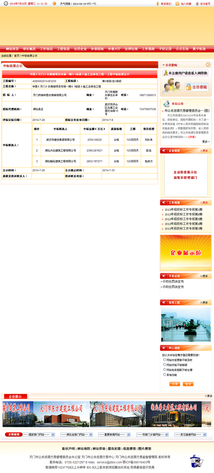華西(天門)農商城項目市場一期(1標段)施工總承包工程