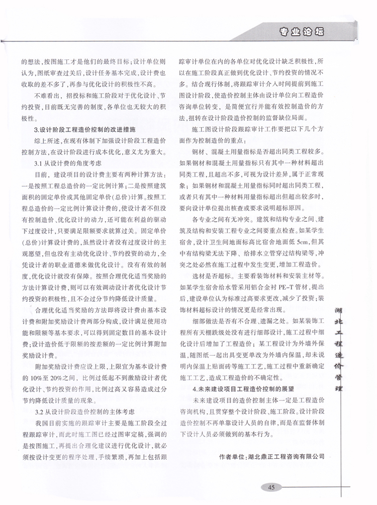 祝賀我司李光洲同志所著文章《淺談建設項目在設計階段的造價控制》在全國工程造價管理類優秀期刊《湖北工程造價管理》
