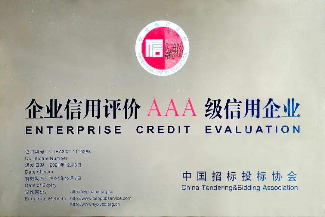 企業信用等級是企業發展過程中信用形象的重要標志,也是企業參與市場競爭的一項重要的無形“資產證”。在國家持續深入推進“放管服”改革,進一步優化營商環境,取消資質審批、加強信用管理的新形勢下,鼎正在眾多參評企業機構中脫穎而出,獲評AAA信用等級榮譽。