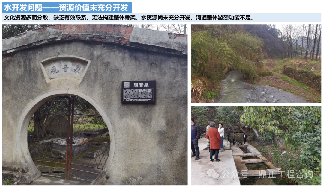 小流域綜合治理還肩負著鄉(xiāng)村振興和改善人居環(huán)境的雙重重任,推進流域內水污染防治和鄉(xiāng)村綠化美化,依托流域的綠水青山、田園風格、鄉(xiāng)土文化等優(yōu)勢條件實施“小流域+”,因地制宜打造產(chǎn)業(yè)綜合體。以本項目為例,羊樓洞港小流域的茶旅融合特色鮮明,茶馬古道歷史文化深厚,羊樓洞的三大古泉(觀音泉、石人泉、涼蔭泉)以及相公泉等均缺乏合理保護和開發(fā),流域文脈尚需系統(tǒng)性的解讀和保護下的傳承創(chuàng)新,人、水、鎮(zhèn)三者關系不協(xié)調。