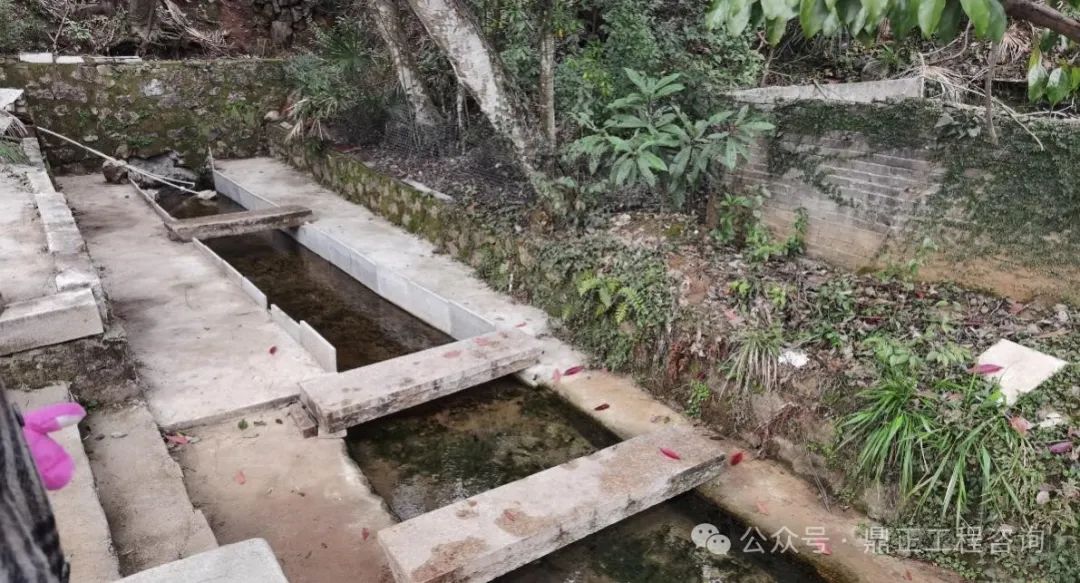 以“茗士茶榭”為例,是選取相公泉進行試點整治。相公泉作為羊樓洞的古泉之一,長期以來缺乏有效保護和利用,現(xiàn)狀為“三面光”的硬化渠,泉眼處作為周邊居民的備用取水點,泉水經(jīng)由水渠匯入藕塘中。目前相公泉下游布局了“愛上你的小屋”項目,作為引導村民農(nóng)房規(guī)范建設的試點,項目要打造各區(qū)域風格統(tǒng)一、景觀協(xié)調的高品質居住區(qū),因此對于相公泉的修復和提升變得尤為重要。