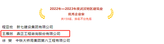11月21日,武漢建筑業(yè)協(xié)會正式公布“2023年度武漢市最具成長性民營建筑企業(yè)”、“2022-2023年度武漢地區(qū)建筑業(yè)優(yōu)秀企業(yè)、優(yōu)秀企業(yè)家、優(yōu)秀總工程師、優(yōu)秀項目經(jīng)理”兩項評選結(jié)果,鼎正連續(xù)上榜,斬獲多項行業(yè)榮譽(yù)!