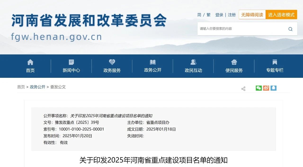 河南省發展改革委印發2025年河南省重點建設項目名單,明確2025年省重點項目1037個、總投資約3.1萬億元,力爭年度完成投資1萬億元左右。項目涵蓋創新驅動能力提升、基礎設施建設、新型基礎設施建設、產業轉型發展、綠色低碳轉型、民生社會事業改善等六大領域。