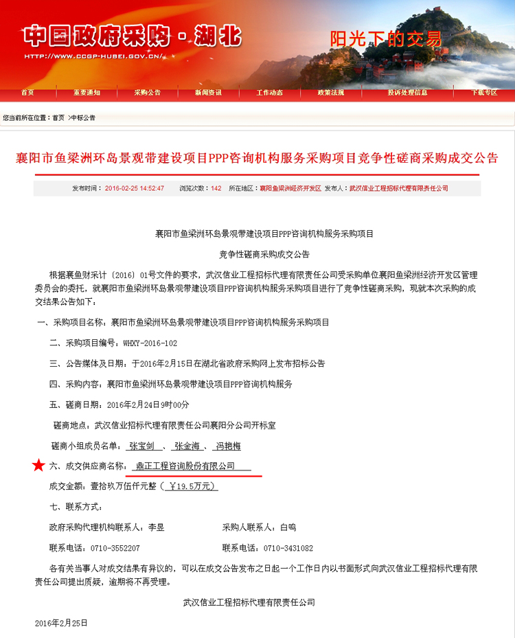 【經(jīng)營成果】我司中標襄陽市魚梁洲環(huán)島景觀帶建設項目PPP咨詢機構(gòu)服務采購項目