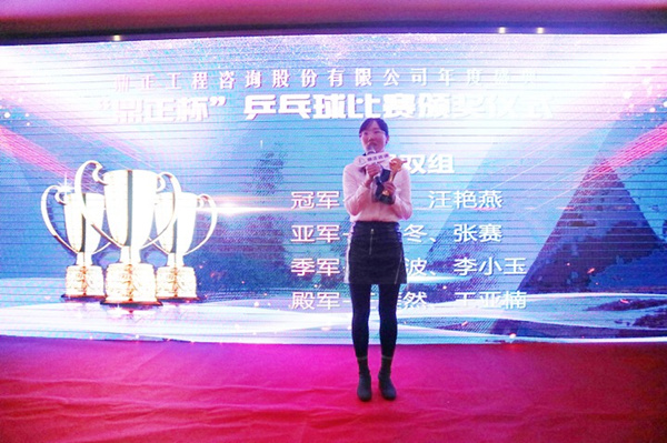 隨后,頒獎典禮正式開始。首先進行的是鼎正咨詢歷屆傳統環節第七屆“鼎正杯”乒乓球比賽頒獎儀式。鼎正運動健兒們在本屆乒乓球比賽中盡情揮灑著激情與汗水,充分展現了鼎正人團結向上、自強不息的精神風貌。