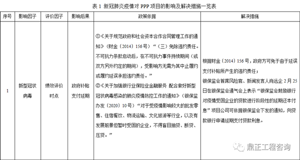 綜上所述,疫情對PPP項目的影響為三個方面,一是政府補貼支付延期;二是績效評價評分降低;三是項目公司收益受損。